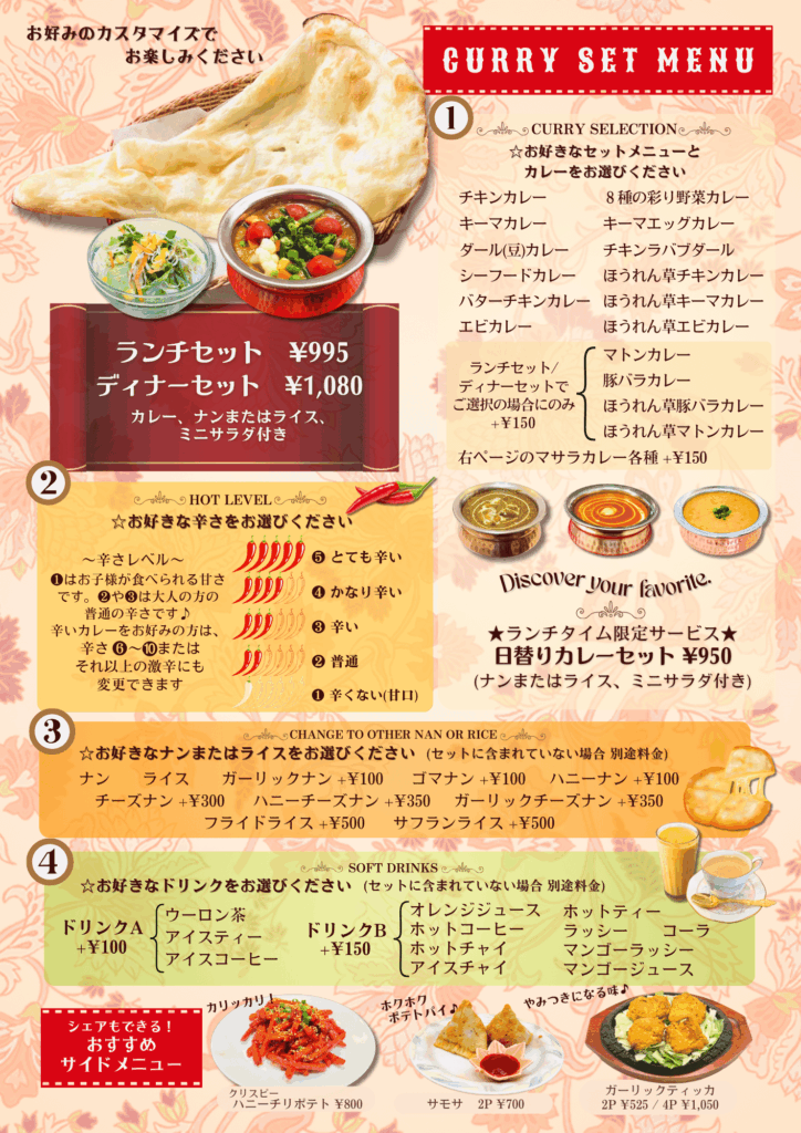 21種類の本格インドカレー!大人気ビリヤニも♪袋井店・浜松半田山店 営業中♪ 皆様のご来店を心よりお待ち申し上げます。〈月曜定休〉 尚、ホームページ再構築中により、ご不便をお掛け致します。