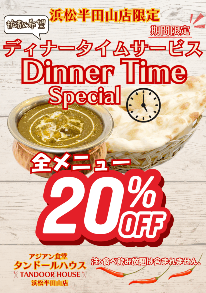 🌟期間限定🌟 【クーポンをご提示いただくと割引きになるディナータイム20%OFFキャンペーン中!!】